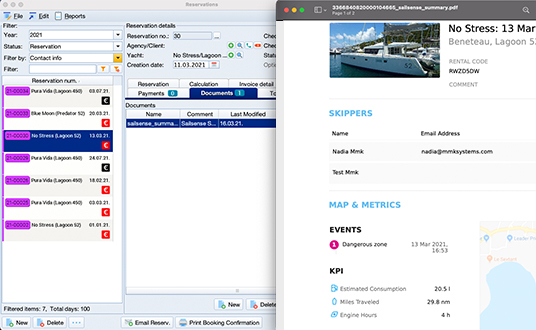 Keep track of the boat's usage, save all the check-in and check-out information in one place. After the charter is completed, get the PDF with the boat's usage and the check-in and check-out file signed by the client directly in the reservation documents of your Booking Manager.
