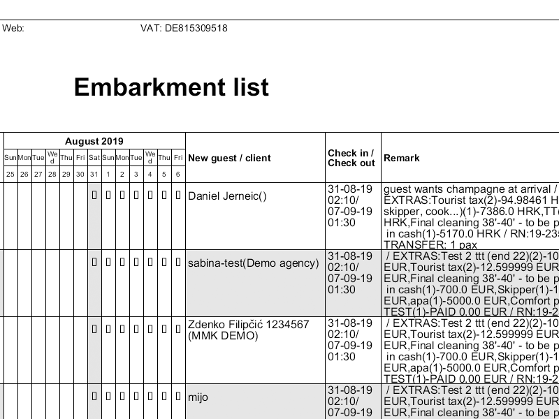 If there is any important information that you should pay attention to, you don’t need to be afraid of missing it. Simply add the remark which will be visible on reservation and embarkment report. If the remark is confidential, you can add it to the Internal remarks section, to be visible only for the System users.