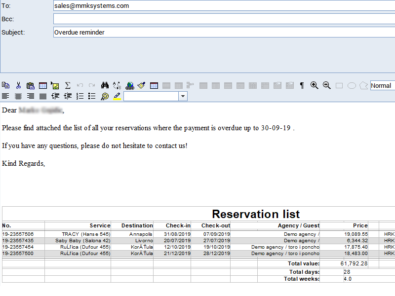 The System allows you to search by payment filters or by reservation filters. Results can be displayed by payment, date, payment method, reservation or client. They will reliably and accurately show you the amount of money that you have already received, invoiced amount and the exact amount that is in debt and needs to be paid.