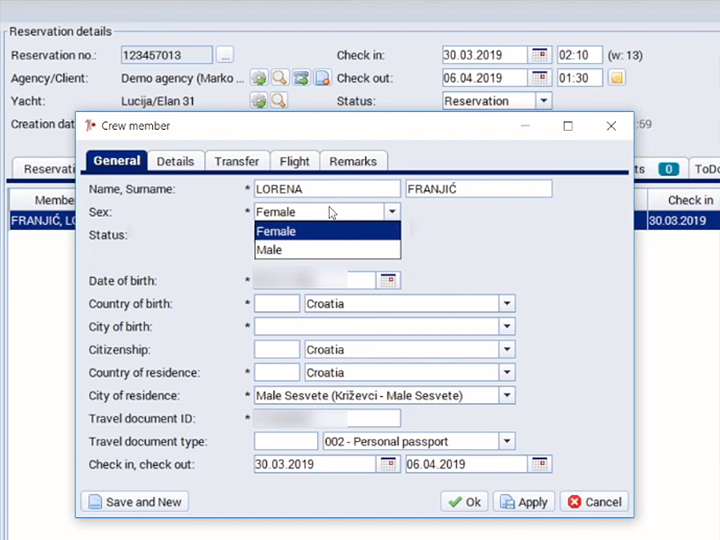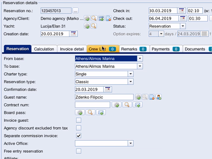 When a client arrives at the base to check-in, you can enter all necessary data in a simple way. When you open guests reservation, select the tab Crew List, insert the document and then you are set to do the scanning.