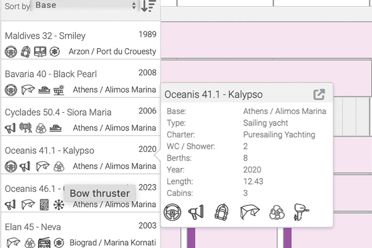 Checking yacht equipment is now easier and much more intuitive. Check the icons displayed beneath each yacht in the V14 booking sheet saving your time.